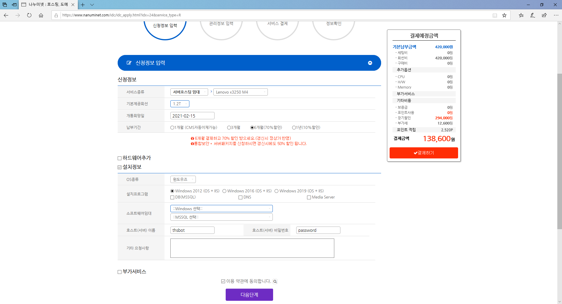 - 납부기간 : 6개월로 선택해야 70%할인된 서비스를 받으실수 있습니다.