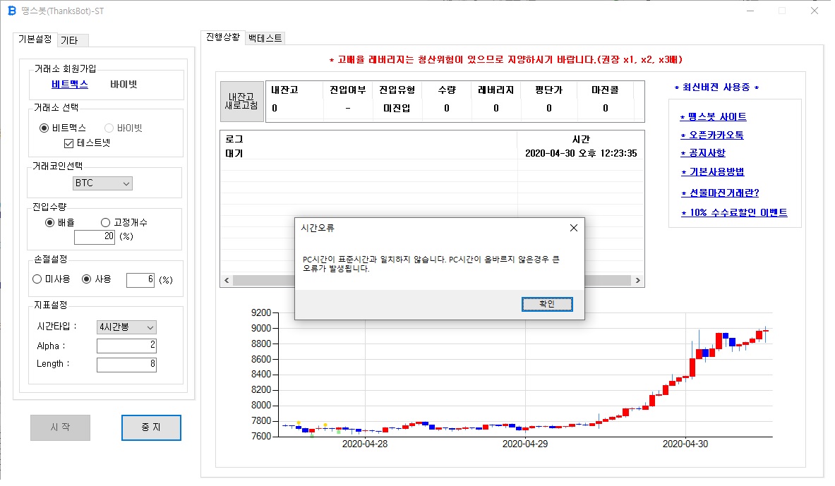 시간이 불일치한경우 각 거래소에서 가져오는 데이타값이 정확하지가 않으므로