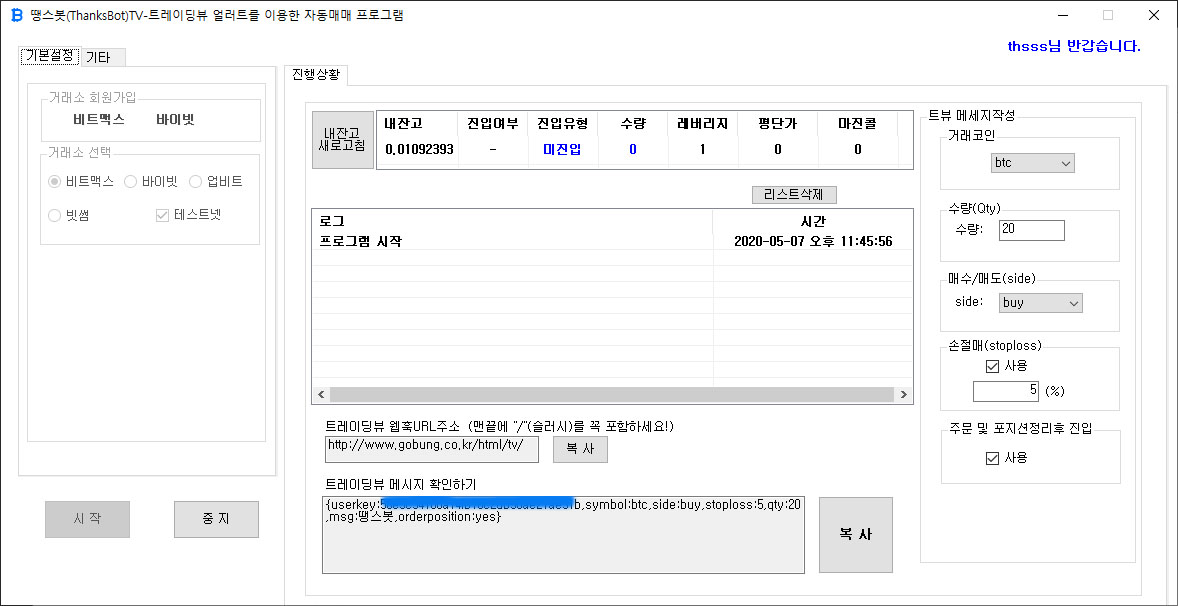 이번 땡스봇 트레이딩뷰 얼러트 자동매매 프로그램도 전면 무료배포입니다.