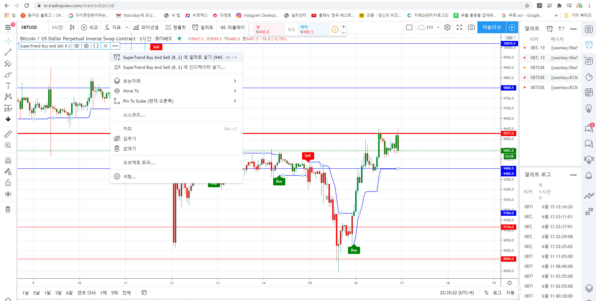 트레이딩뷰(tradingview) 얼러트와 땡스봇TV를 이용하여 슈퍼트랜드(보조지표) 자동매매 하는법을