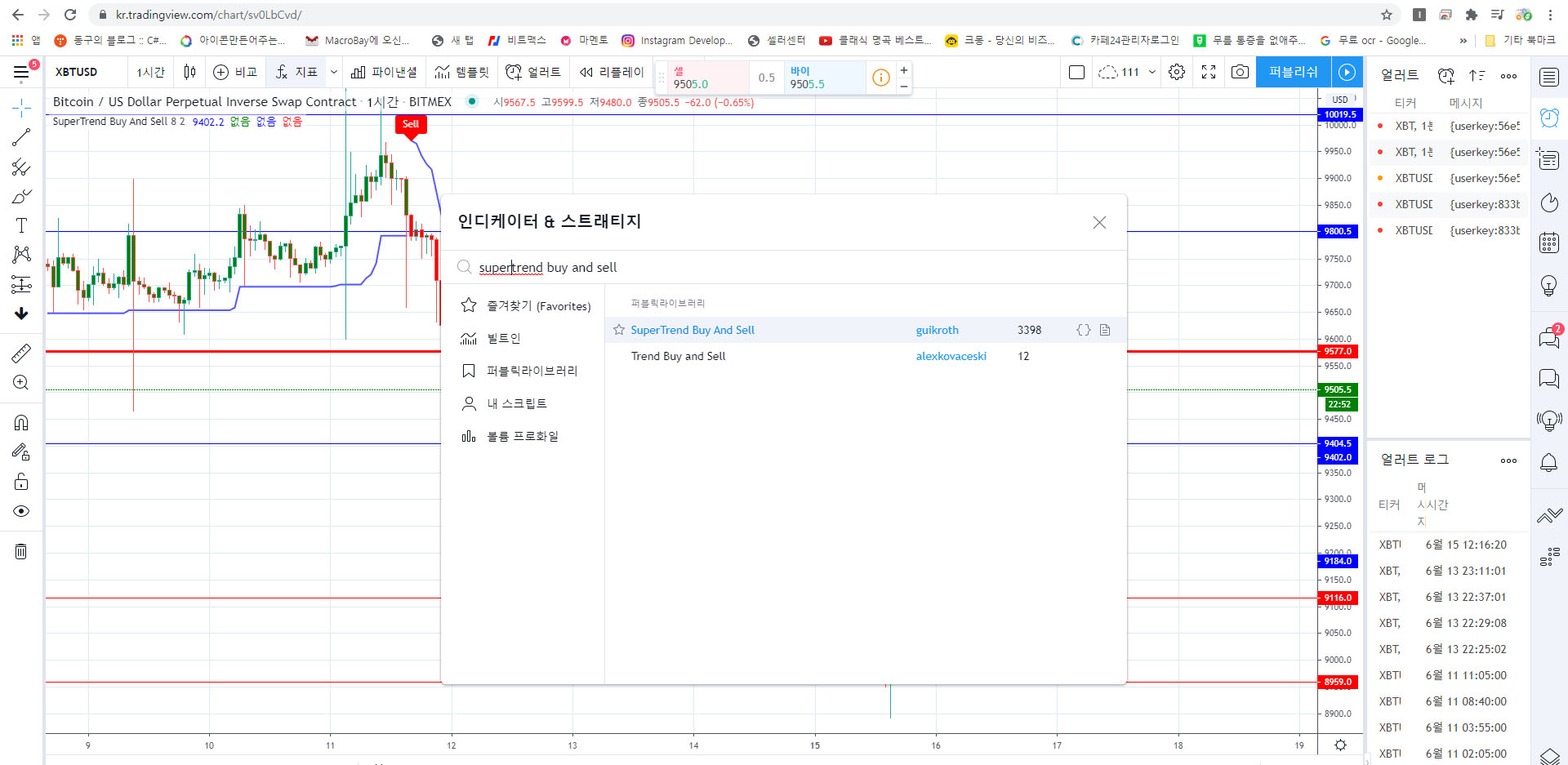 # 1. 슈퍼트랜드 얼러트가 지원되는 보조지표를 트레이딩뷰에 추가한다.