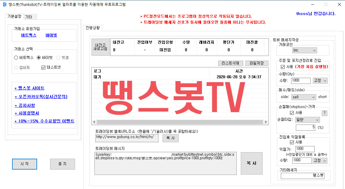 땡스봇 - 땡스봇 자체 입력된 전략을 사용하여 자동매매를 합니다.
