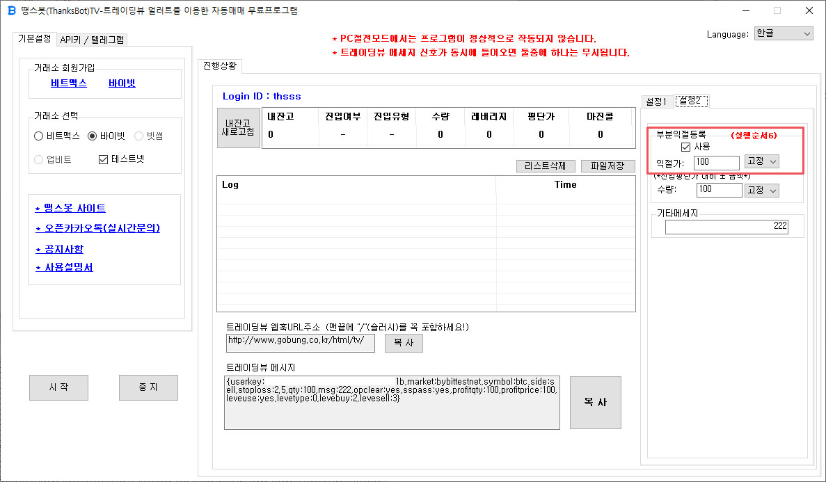 예) 내평단이 9000이고 비율선택후, 3인경우 9270에 부분익절가격을 등록합니다.