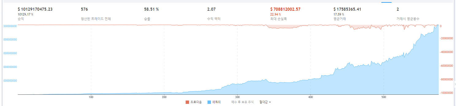 아래 이미지를 보시면 아시겟지만 수익률 곡선이 깔끔한상태로 우상향 되는 전략입니다.