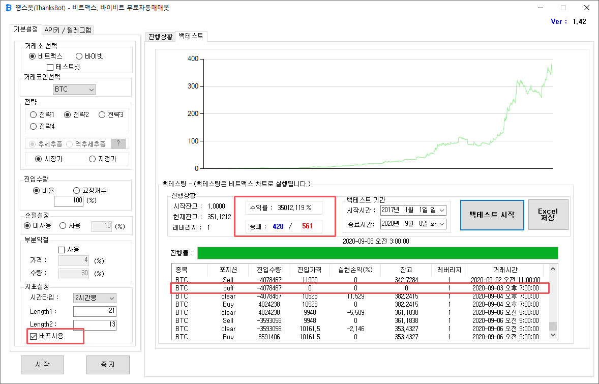 이번 버프사용 업데이트 이후로 백테스트 해봣을때 2017-2020년 현재까지 전체적으로 수익률이 좋게 나옵니다.