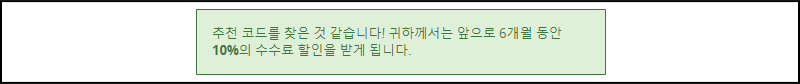 여기서 6개월 동안 10%의 수수료 할인 메시지를 확인하시고~